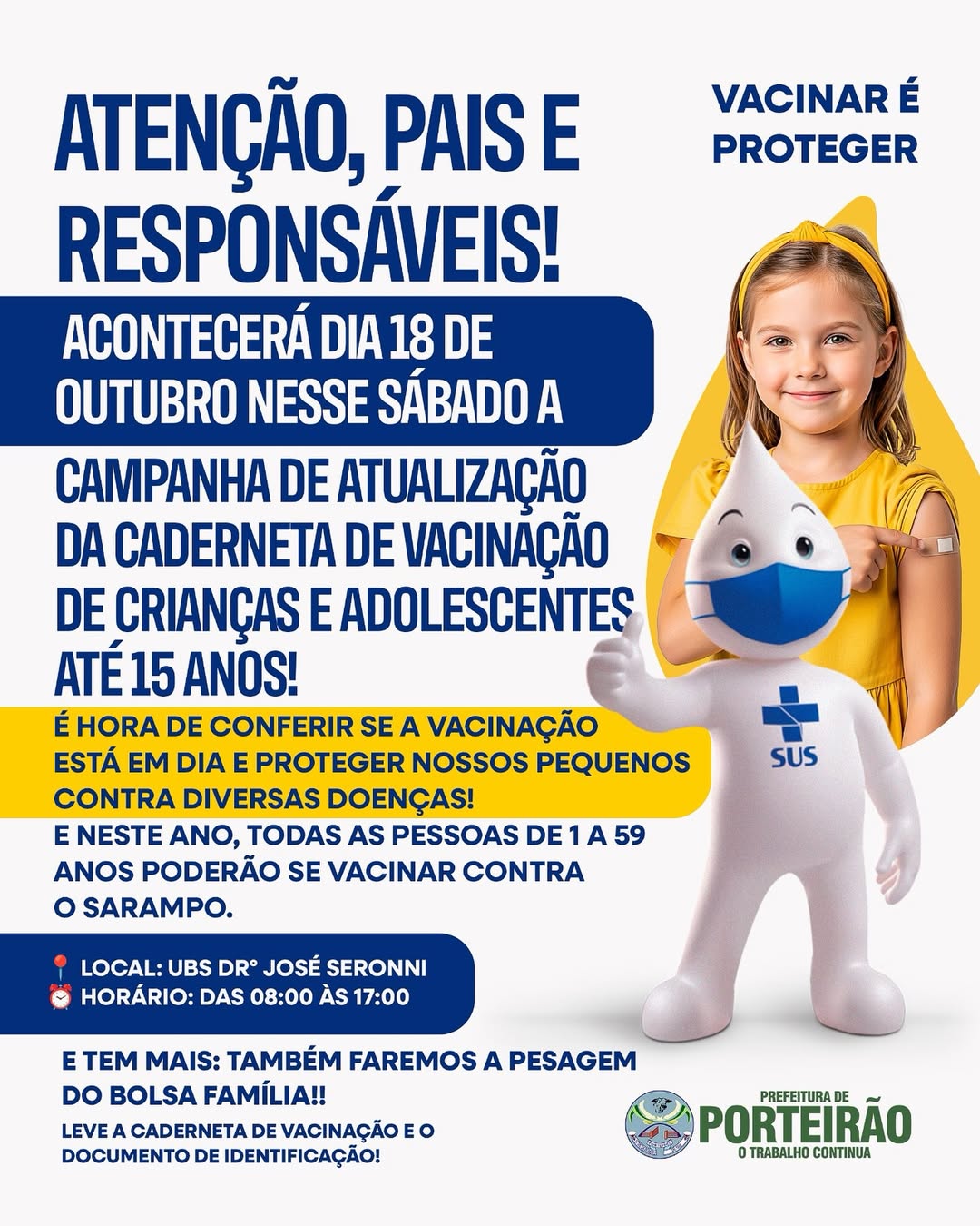 ✅ Leve a caderneta de vacinação e o documento de identificação!