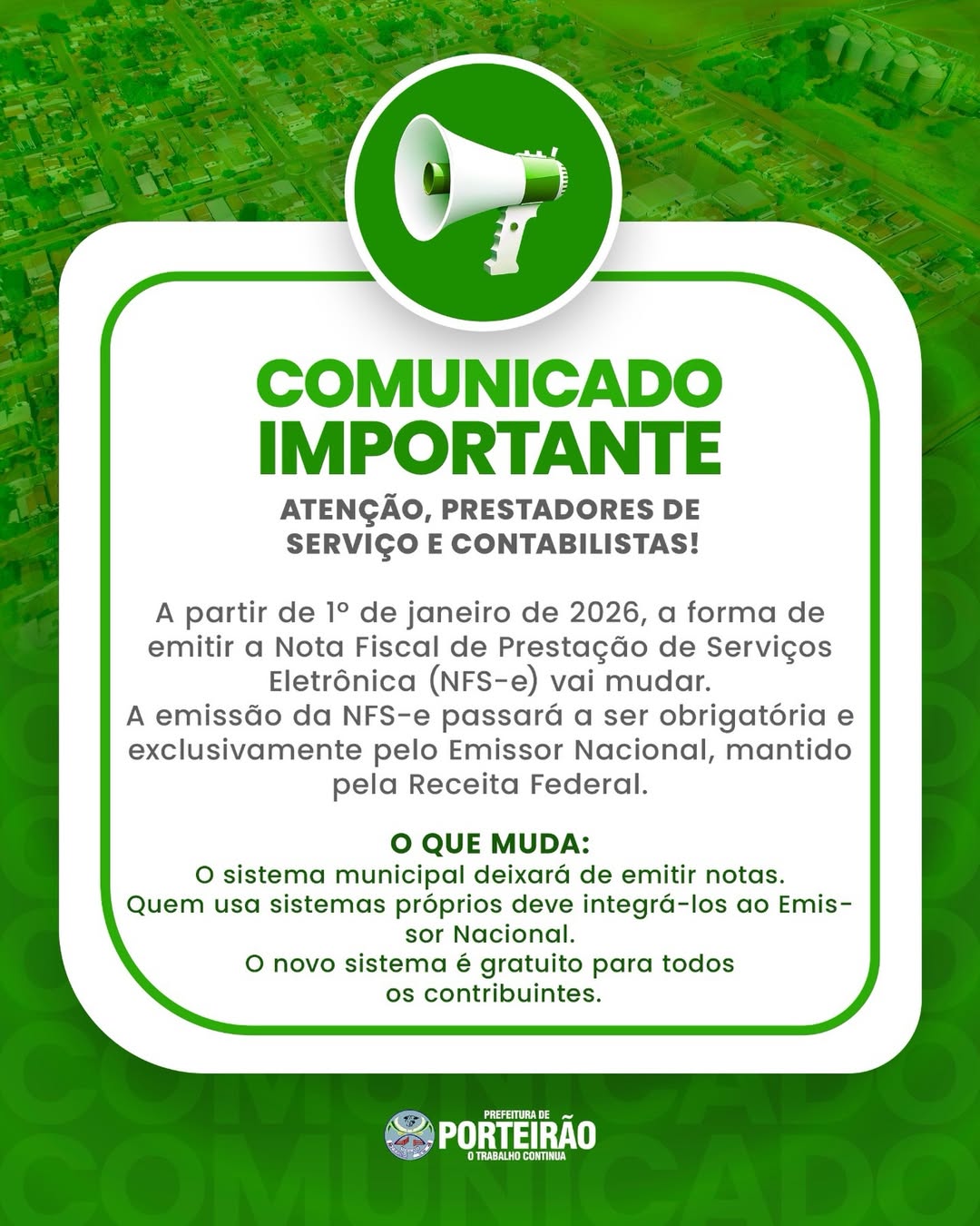 Atenção, prestadores de serviço e contabilistas de Porteirão!