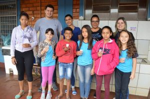 Na ocasião, realizam a aplicação de flúor nos alunos da Escola Sete de Setembro, e fazem orientações sobre escovação dental e outros cuidados com a saúde bucal.