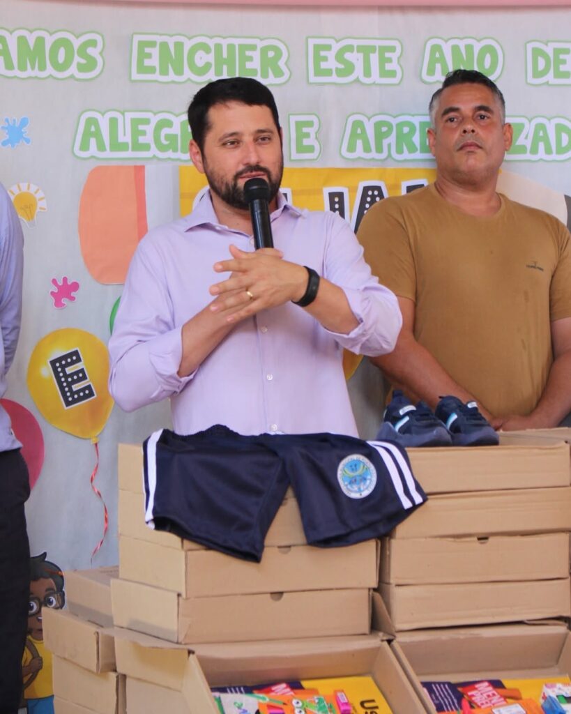 Hoje, no primeiro dia de aula, o prefeito Henrique e o vice-prefeito Oldair Arruda, acompanhados do deputado estadual André do Premium, realizaram a entrega de uniformes escolares para todos os alunos da rede municipal de ensino, do 1º ao 5º ano.