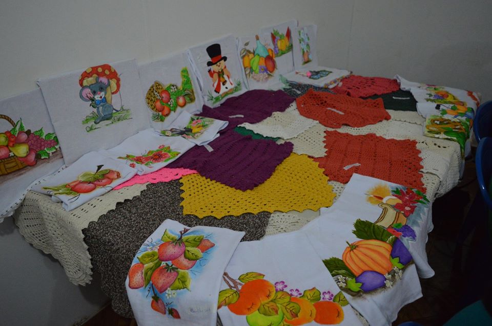 Entrega de certificados de conclusão dos cursos de crochê e pintura em tecido