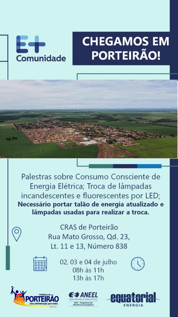 Os cadastros para o sorteio das geladeiras e curso/workshop, troca de lâmpadas será realizado no CRAS – Rua Mato Grosso Q.23 L.11 e 13 Nº 838.